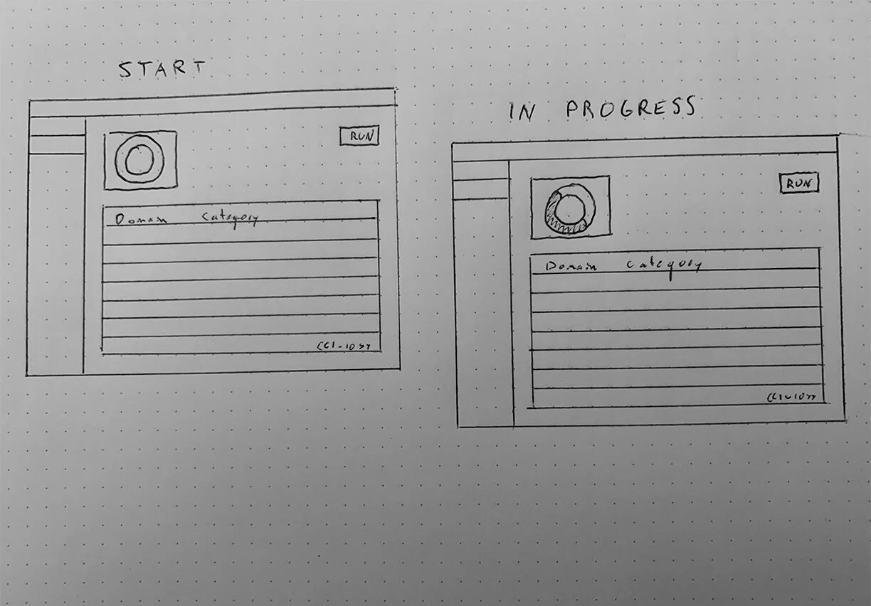 The next step was designing how the application would allow the user to upload a new list of domains and signal to the application that they are ready for it to begin the categorization process. For this, I designed a button that would open a modal that would allow the user to select and run their list of domains. Once the user started the application, the modal would close and the user could watch as the categorization results would be visible on the main page.
