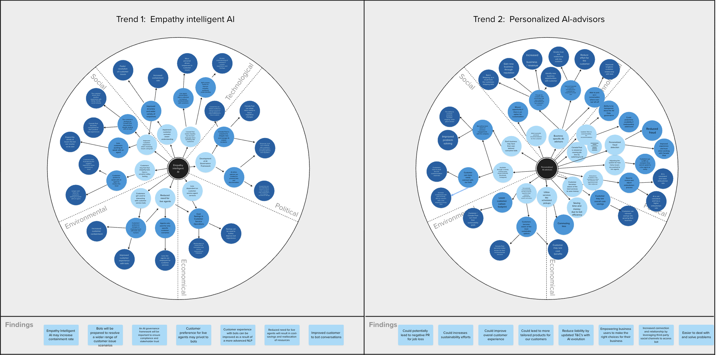 Working with my team, I was able to deliver a full end-to-end service design blueprint for both their virtual assistant and voice virtual assistant while also delivering a comprehensive foresight report to guide their product decision-making.